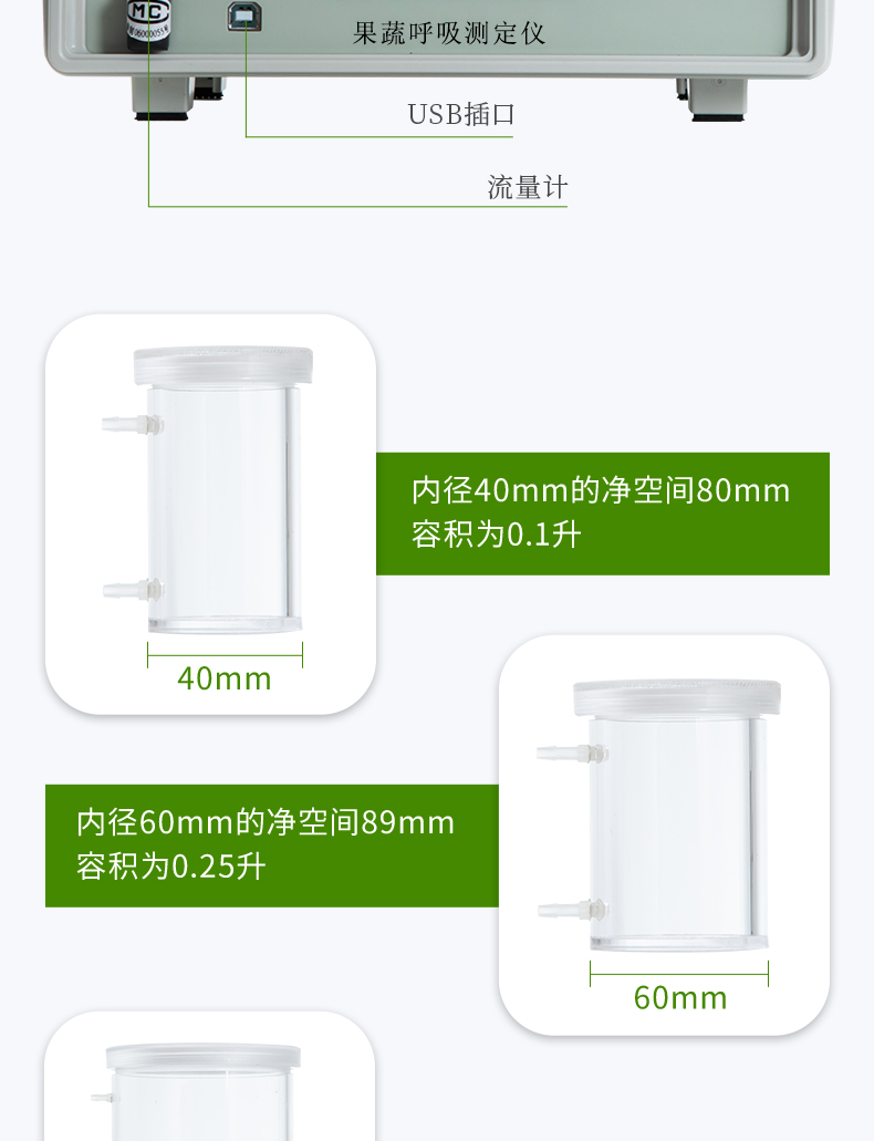 4、氣體流量通過儀器或電腦設定。可以進行不同流量下果蔬呼吸強度的試驗。