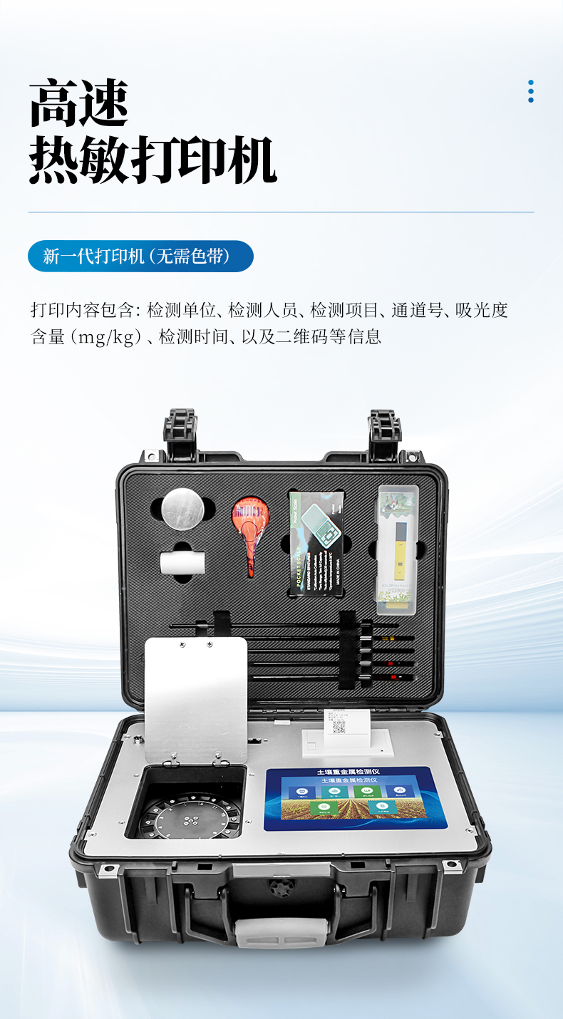 可對土壤、肥料、作物、蔬菜、水果、水質、食品等樣品中的砷、鉛、鎘、鉻、汞、鐵、鋁、鋅、錳、銅等進行快速聯合測定。