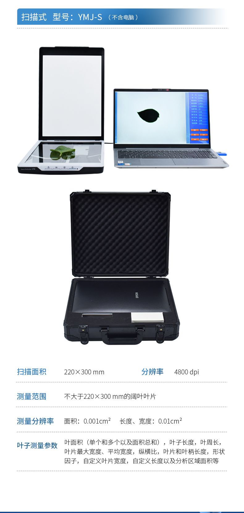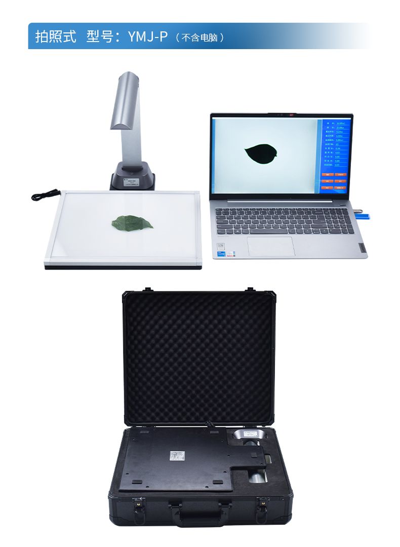 YMJ-P拍照式葉面積儀(電腦版)由圖像采集設備和圖像處理軟件組成,采用本公司新開發的圖像識別軟件,根據葉片輪廓特征提取、圖形實物轉換、邊緣檢測等技術,能夠形象并快速得到所測葉片面積、周長、蟲洞數量等參數。相比傳統的葉面積,具有測量更快速簡便、結果更形象客觀、數據多樣并大大減少了人為操作帶來的誤差。