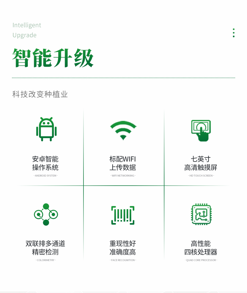 熱敏打印機,測試項目齊全,可打印測試結果,配套施肥指標體系,配套成品藥劑。
