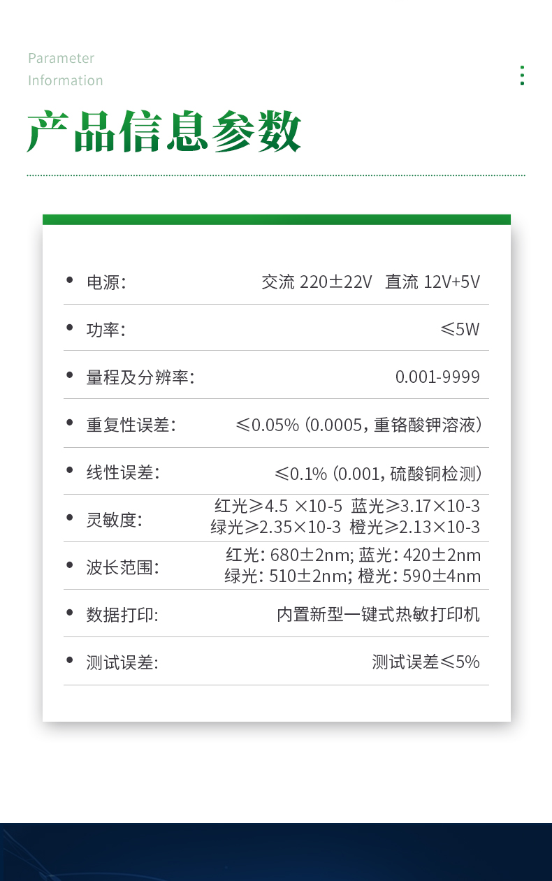 6.線性誤差: ≤0.3%(0.003硫酸銅檢測)
