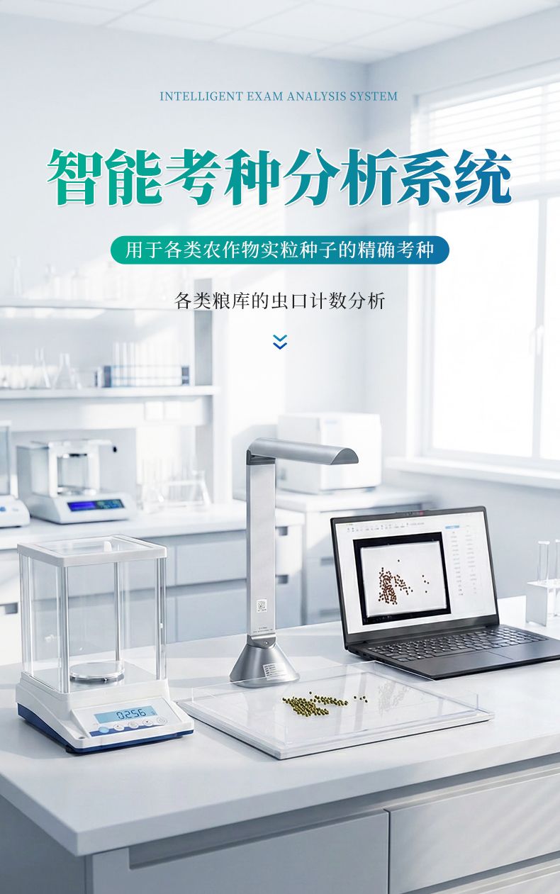 智能考種系統由三部分組成:1600萬高拍儀、背光裝置和裝有嵌入式軟件的平板。背光裝置采用的是高亮LED燈,外邊框使用鋁合金材質制成。軟件采用先進的圖像處理技術,根據距離變換原理、形態學、凸包檢測等技術綜合設計的一款嵌入式軟件。該設備主要應用在農業領域的田間作物測產及考種等方面,通過高拍儀拍攝的照片,軟件自動計算種子數量,種子的面積、周長、長度、寬度、長寬比等數據,根據天平所得的重量與種子的數量自動計算出千粒重;以列表和圖形的方式輸出結果,便于用戶查看與分析研究。本產品也可以手動對作物種子數量修正以確保計數精度、對數據進行保存,并且可以查看數據報表,最后可以將數據以Excel格式導出,或者通過WiFi數據上傳到儀器云數據管理系統從而實現數據統計,分析智能化。