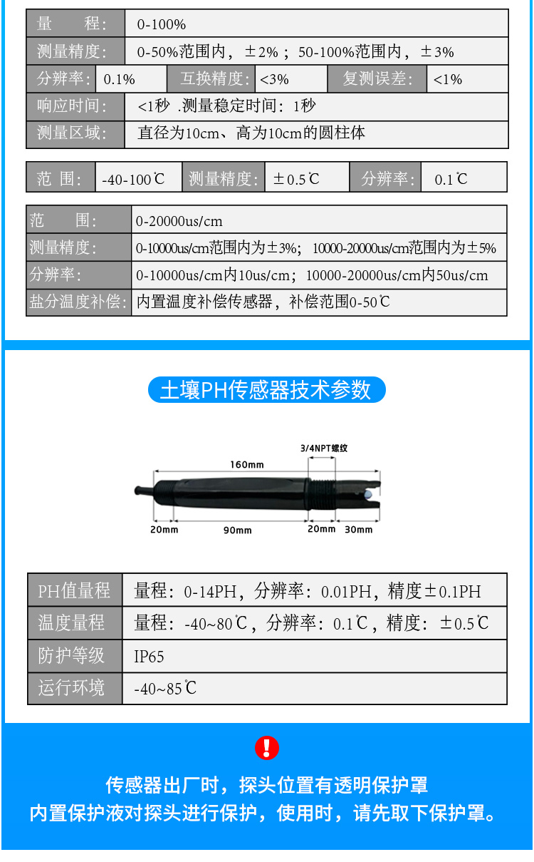 量程:0-100%(m3/m3) 測(cè)量精度:0-50%(m3/m3)范圍內(nèi))±2%(m3/m3);