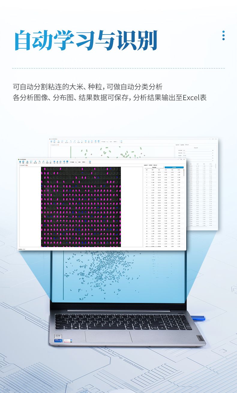 14、具有自動學習與識別特性,可自動分割粘連的大米、種粒,可做自動分類分析。