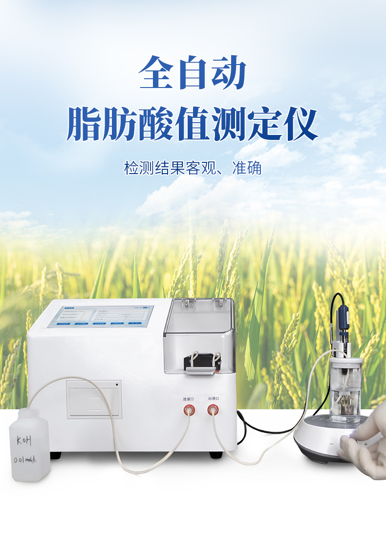 全自動脂肪酸值測定儀是針對脂肪酸值作為判斷儲糧品質(zhì)劣變的重要儀器設(shè)備,是一種以電極電位突躍作為指示終點為控制依據(jù)的自動滴定裝置。主要用于測定稻谷、糙米、大米等糧食作物的脂肪酸值,是一種專用檢測設(shè)備。本儀器實現(xiàn)了滴定終點判定、計量、數(shù)據(jù)處理、測定結(jié)果顯示及打印功能自動化,提高了檢測結(jié)果的客觀性及準(zhǔn)確性,具有操作簡單、使用方便的特點。