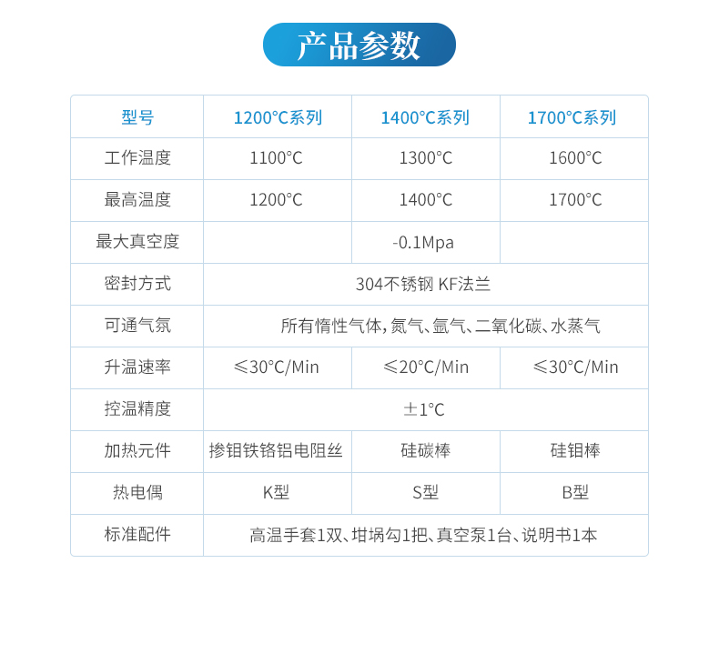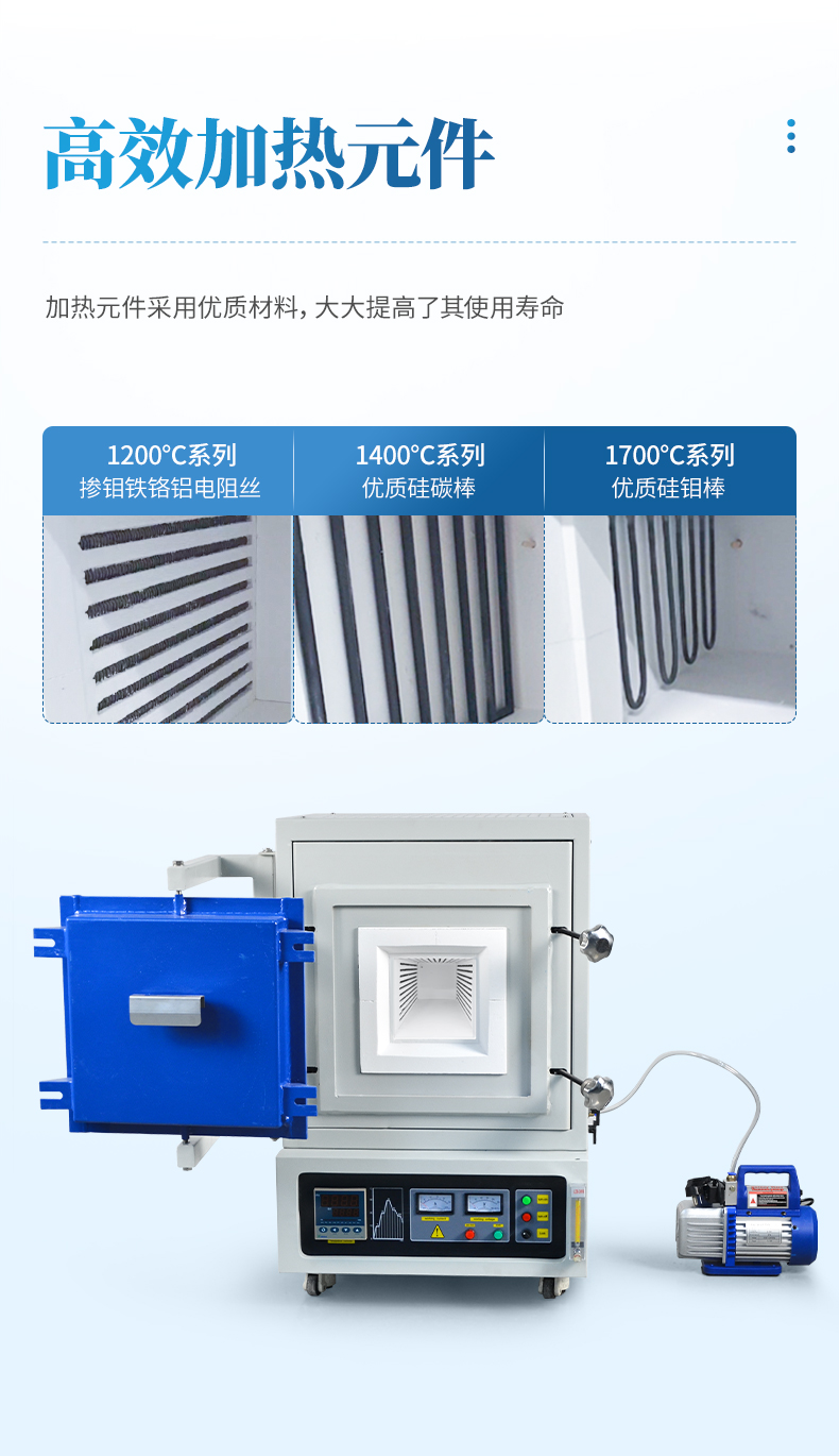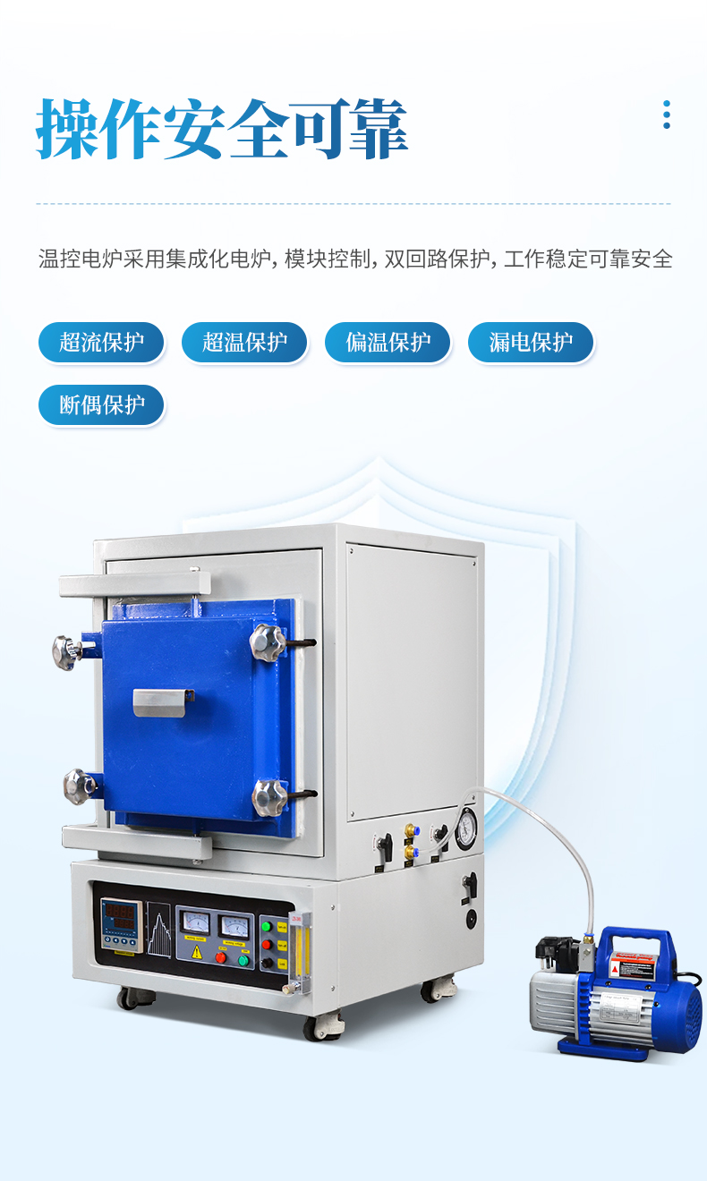 【產品簡介】最高溫度:1200℃、爐膛:100*100*100mm、雙回路保護、智能編程升溫、標配真空泵、1kW功率,工作溫度:1100℃