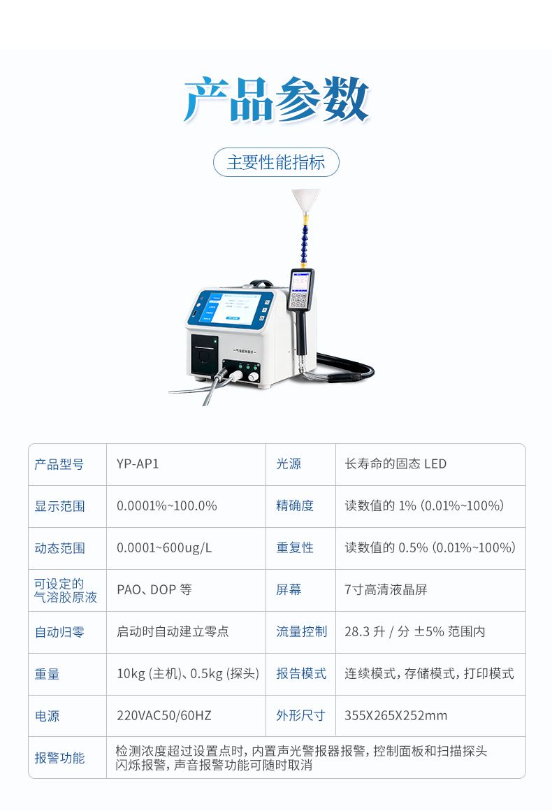 AP1型氣溶膠光度計是根據光Mie散射原理設計的,主要用于現場高效過濾器系統的完整性檢測。主機采用7寸LCD液晶,實時顯示濃度數據、泄露率等參數。適用于HEPA過濾器、HVAC系統、生物安全柜、潔凈室、手套箱等泄露檢測。