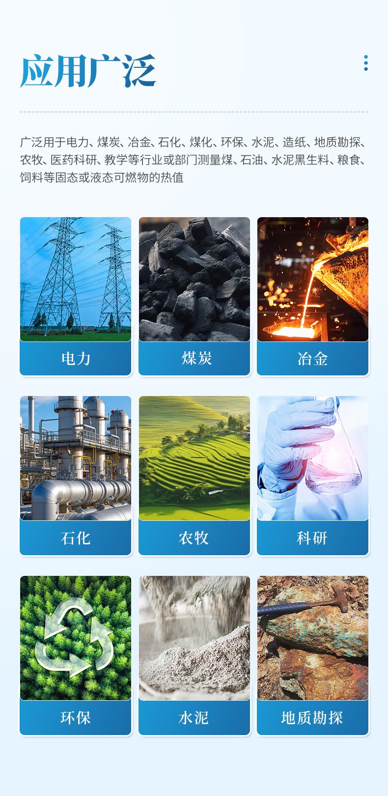 醫藥科研、教學等行業或部門測量煤、石油、水泥黑生料、糧食、飼料等固態或液態可燃物