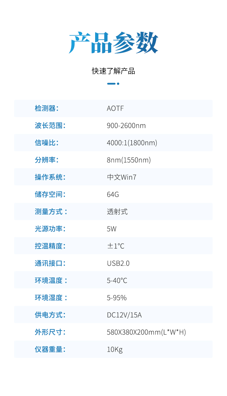采用新型的AOTF 聲光可調(diào)檢測技術,整機設計 小巧緊湊,安裝快捷,操作簡單,配有外置熔樣和內(nèi)置恒溫裝置,進行快速 無損的定量檢測,在化工、制藥、軍工等行業(yè)有著廣泛應用。