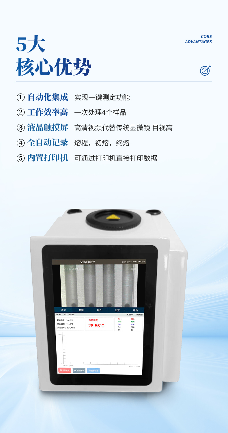 熔點儀在化學(xué)工業(yè)、醫(yī)藥研究中據(jù)有重要地位,是生產(chǎn)食品、藥物、香料、染料及其他有機晶體物質(zhì)的必備儀器。