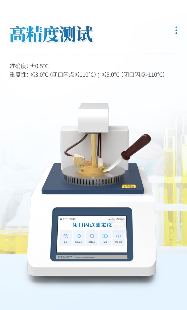 267-88的情況下,連續(xù)測(cè)試同一樣品,兩者閃點(diǎn)值相差≤4℃。4、自動(dòng)化程度高。可以自動(dòng)完成測(cè)試過程,自動(dòng)進(jìn)行冷卻,自動(dòng)信息提示等。開口閃點(diǎn)測(cè)定儀功能與性能和國(guó)內(nèi)外最高水平接軌,是石油、電力、化工、商檢等行業(yè)替代進(jìn)口產(chǎn)品的專用儀器。