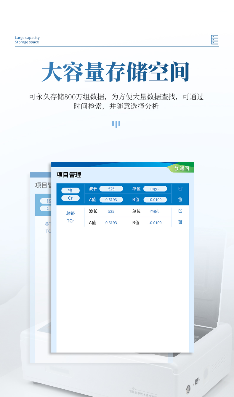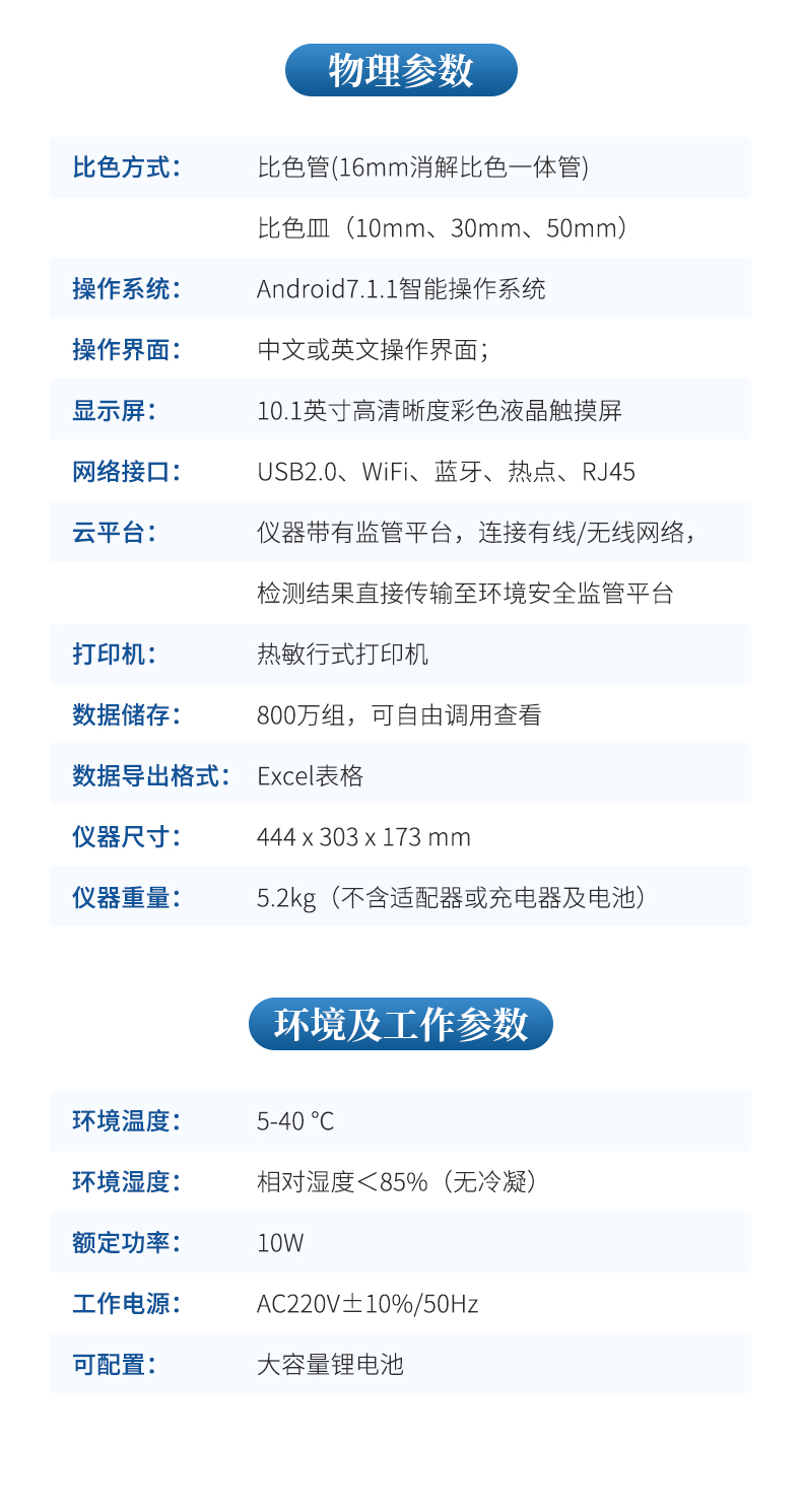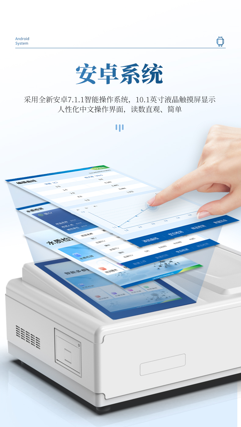 主要檢測水質六價鉻重金屬含量指標,兼具智能數據分析功能,圖表、列表顯示數據,分析一目了然;高清晰度彩色液晶觸摸顯示屏,Android智能操作系統,中文顯示界面,中英文鍵盤,人性化操作,使用更簡單。