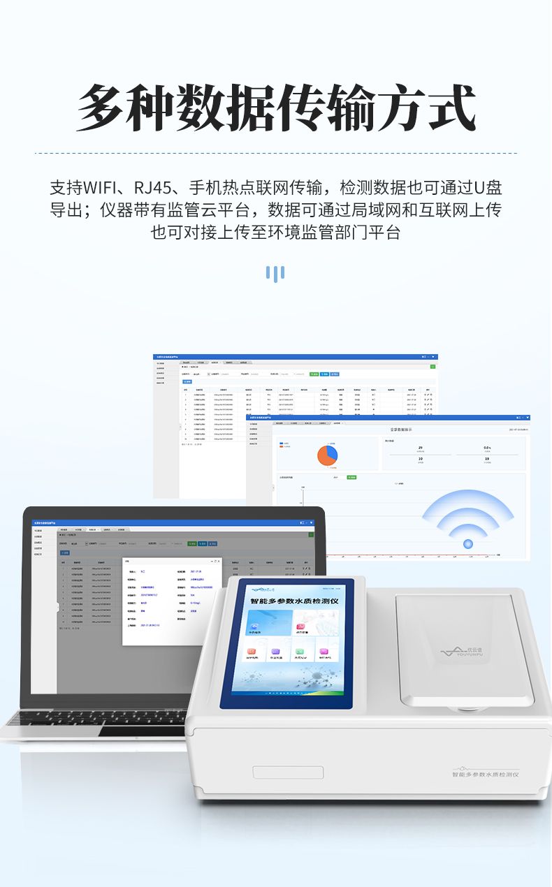 2.配置云監控平臺,檢測結果可直接無線傳至平臺,進行水質長短期分析,輔助管理;