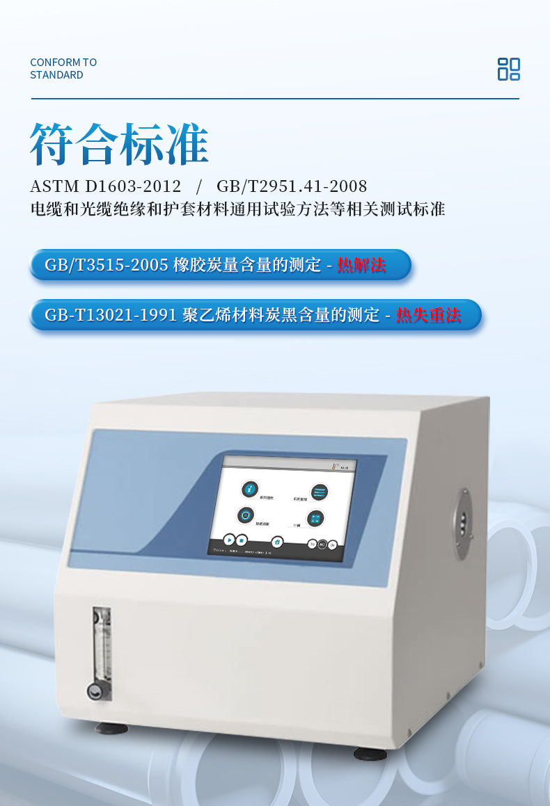 2 該儀器適用于聚乙烯、聚丙烯、聚丁烯塑料中炭黑含量的測(cè)定。