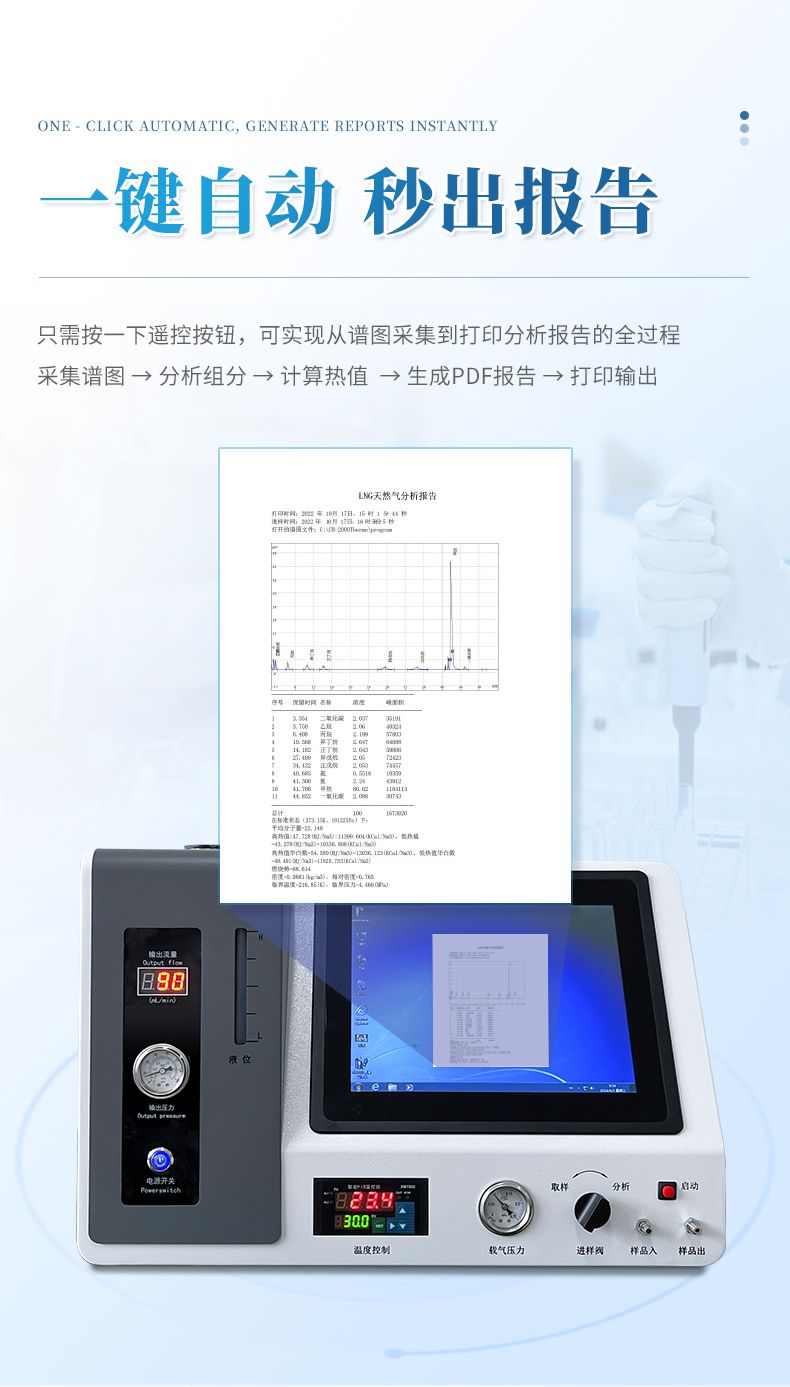 1、將高純氫氣發(fā)生器,工業(yè)級電腦、分析儀、色譜工作站完美結(jié)合,檢測和顯示于一體,通過一次進(jìn)樣可以完成氣體中含量的精確分析,可直接打印分析報告,只需一臺儀器就可完成整個分析,檢測過程更簡單化。