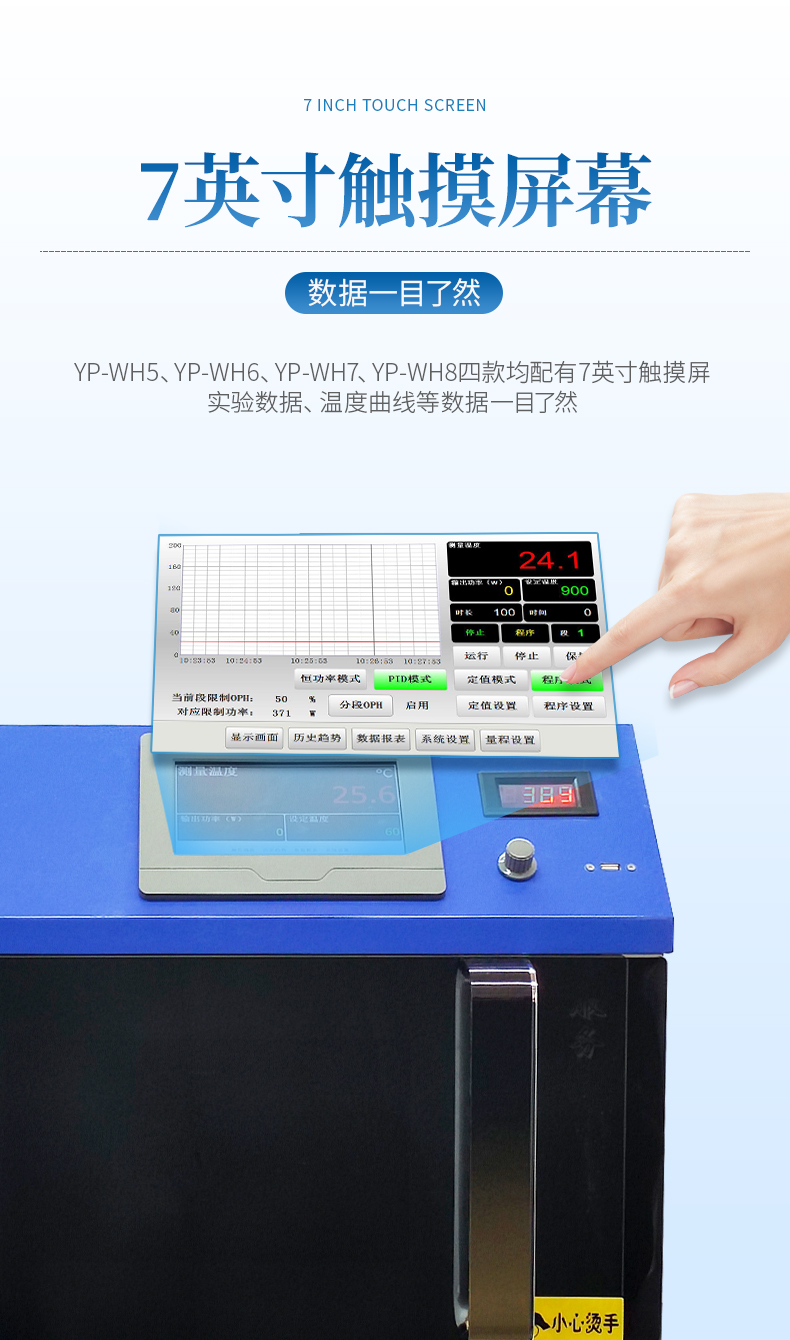 采用最新變頻技術,通過變頻器將50Hz工頻轉換為10000~30000Hz可變頻率,取代了傳統微波反應器使用的高壓變壓器,完美解決了傳統微波反應器精確控溫時,高壓變壓器受尖峰脈沖的沖擊,造成變壓器頻繁損壞的技術缺陷。MCU根據Pt100傳感器實時檢測到的溫度變化數據、反應物質極性、熱容變化、反應時間等數學模型的變化條件,自適應PID調節,自動變頻控制微波輸出功率,從而精確控溫。