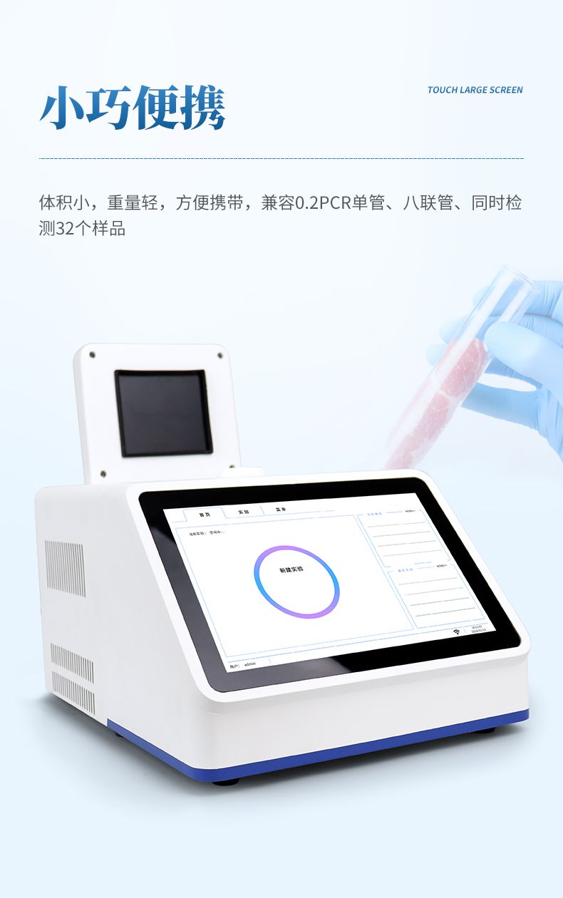 1、體積小,重量輕,方便攜帶,兼容0.2PCR單管、八聯(lián)管、同時(shí)檢測(cè)32個(gè)樣品;