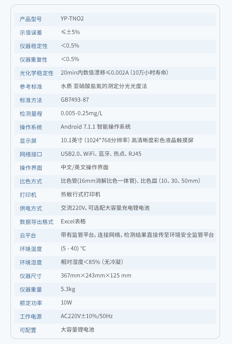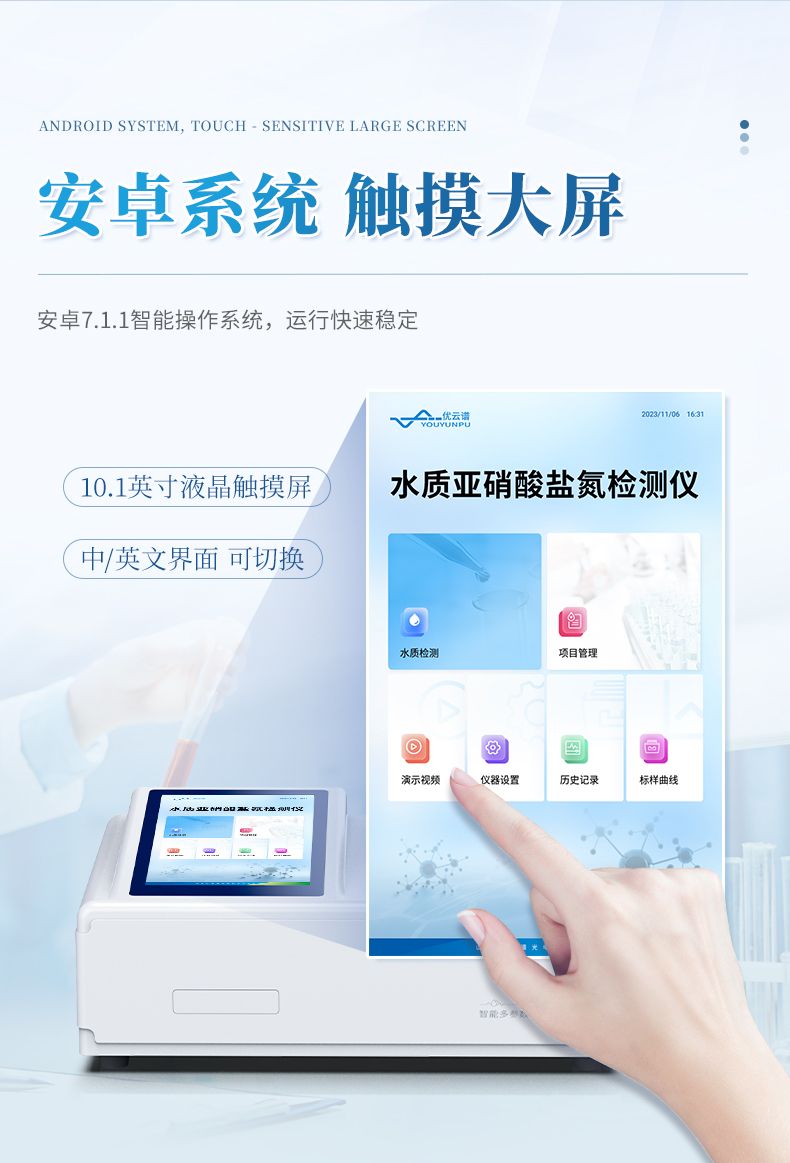 手持式亞硝酸鹽氮檢測(cè)儀主要檢測(cè)水體中的亞硝酸鹽氮含量;參考方法《變色酸光度法》研發(fā)設(shè)計(jì)制造,儀器配備高清晰度彩色液晶觸摸顯示屏,Android智能操作系統(tǒng),中文顯示界面,中英文鍵盤,人性化操作,使用更簡(jiǎn)單;