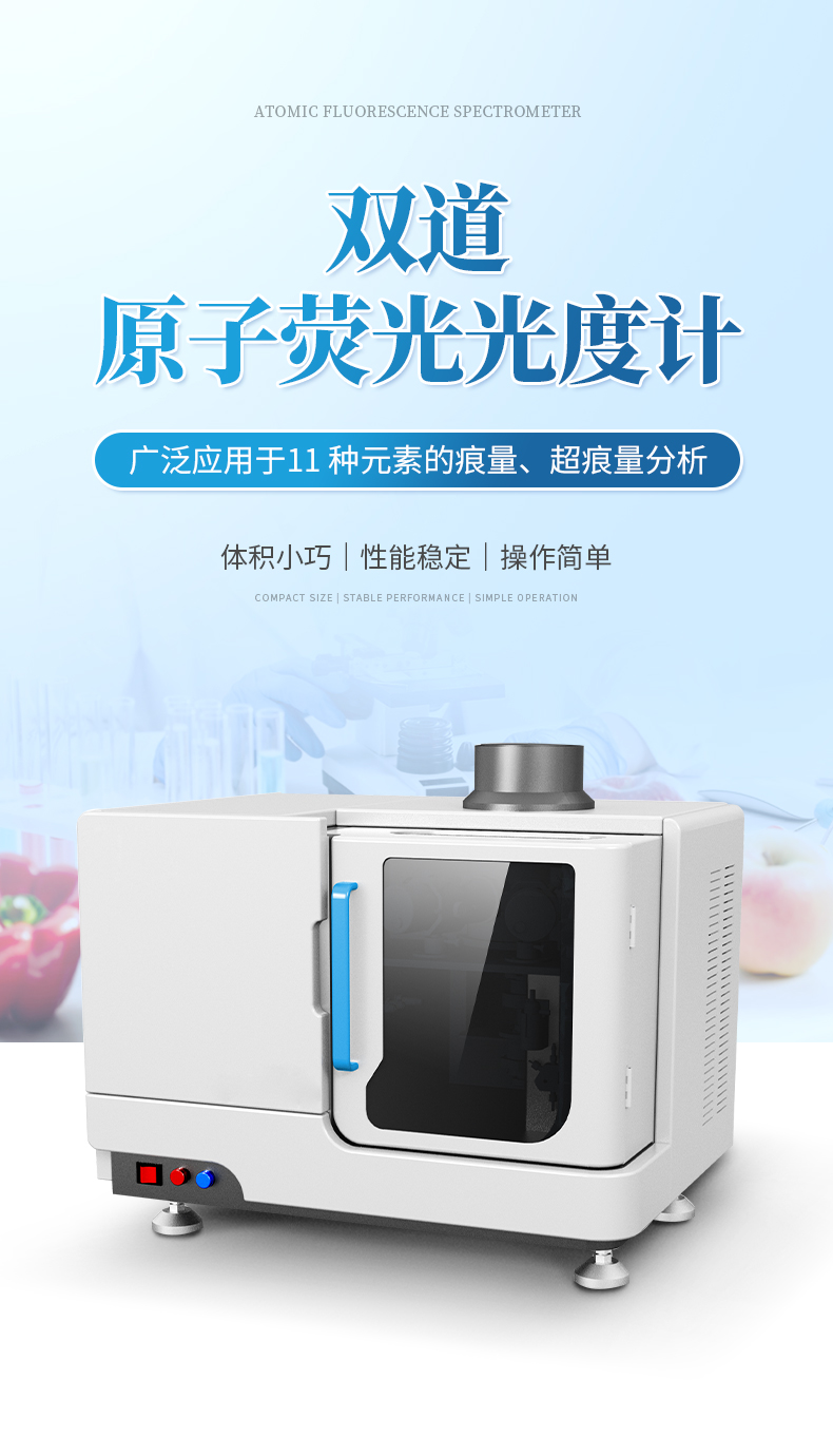 雙道原子熒光光譜儀廣泛應用于汞(Hg)、砷(As)、銻(Sb)、鉍(Bi)、硒(Se)、碲(Te)、鎘(Cd)、鍺(Ge)、鉛(Pb)、錫(Sn)、鋅(Zn)等11 種元素的痕量、超痕量分析,體積小巧,性能穩(wěn)定,操作簡單。
