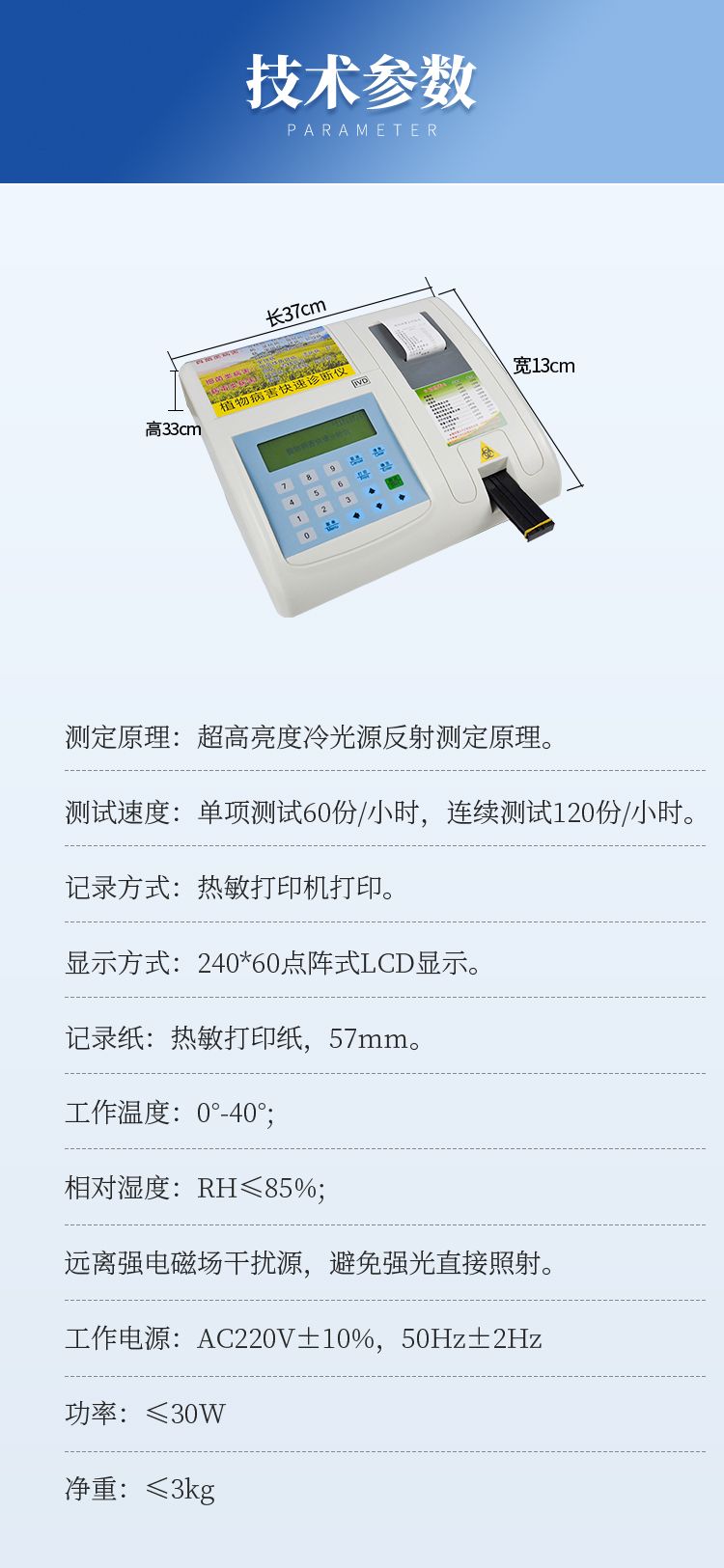 【產(chǎn)品簡介】測定原理:超高亮度冷光源反射測定原理;測試速度:單項(xiàng)測試60份/小時(shí),連續(xù)測試120份/小時(shí)