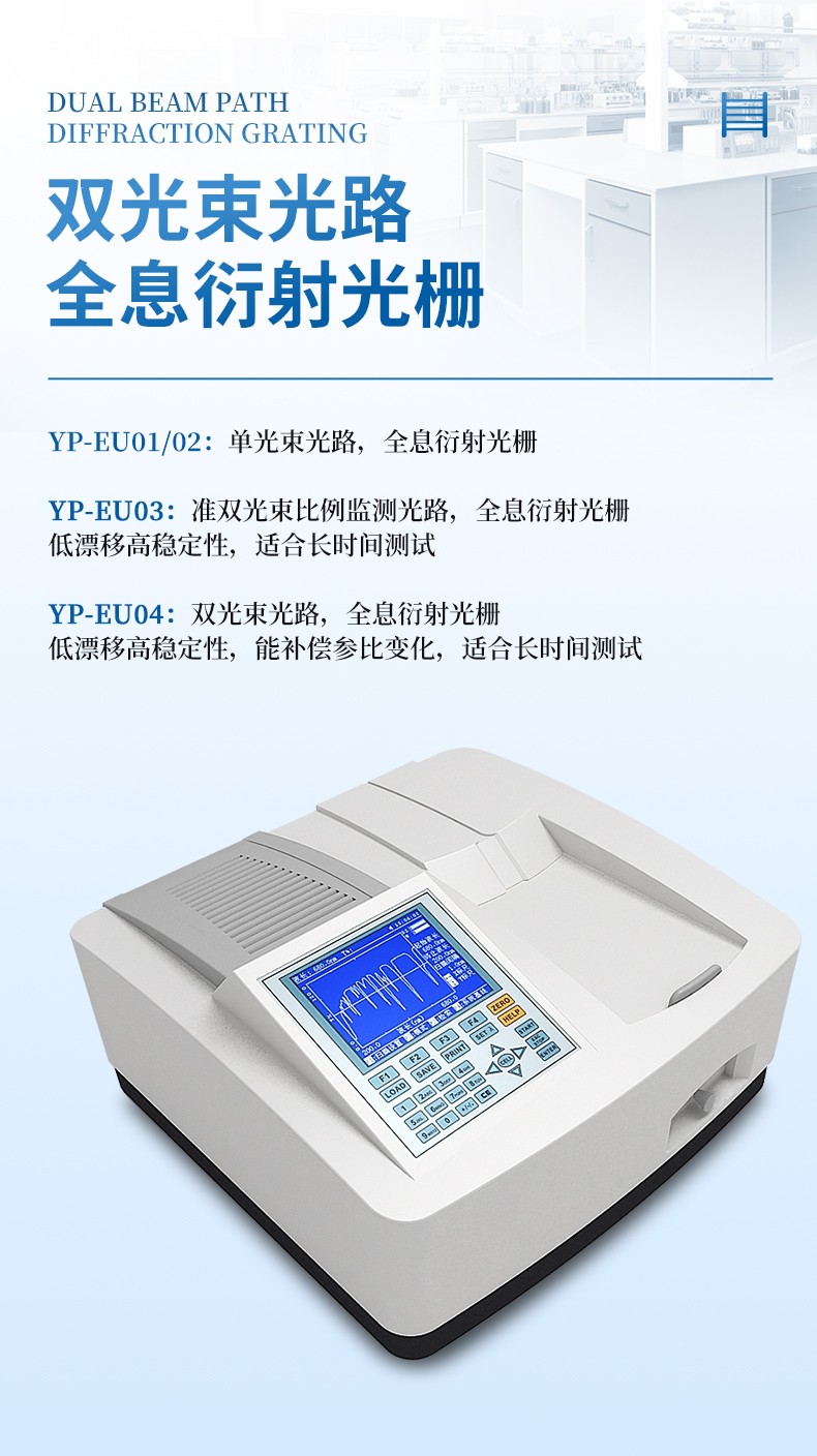 分光光度計具有定量測量、波長掃描、時間掃描、多波長測試、DNA蛋白質測試等高階功能,具有高精度、高分辨率、低噪聲、低雜散光的特點,特別適用于科學研究、醫藥檢驗、生命科學、環境監測、冶金化工等領域。